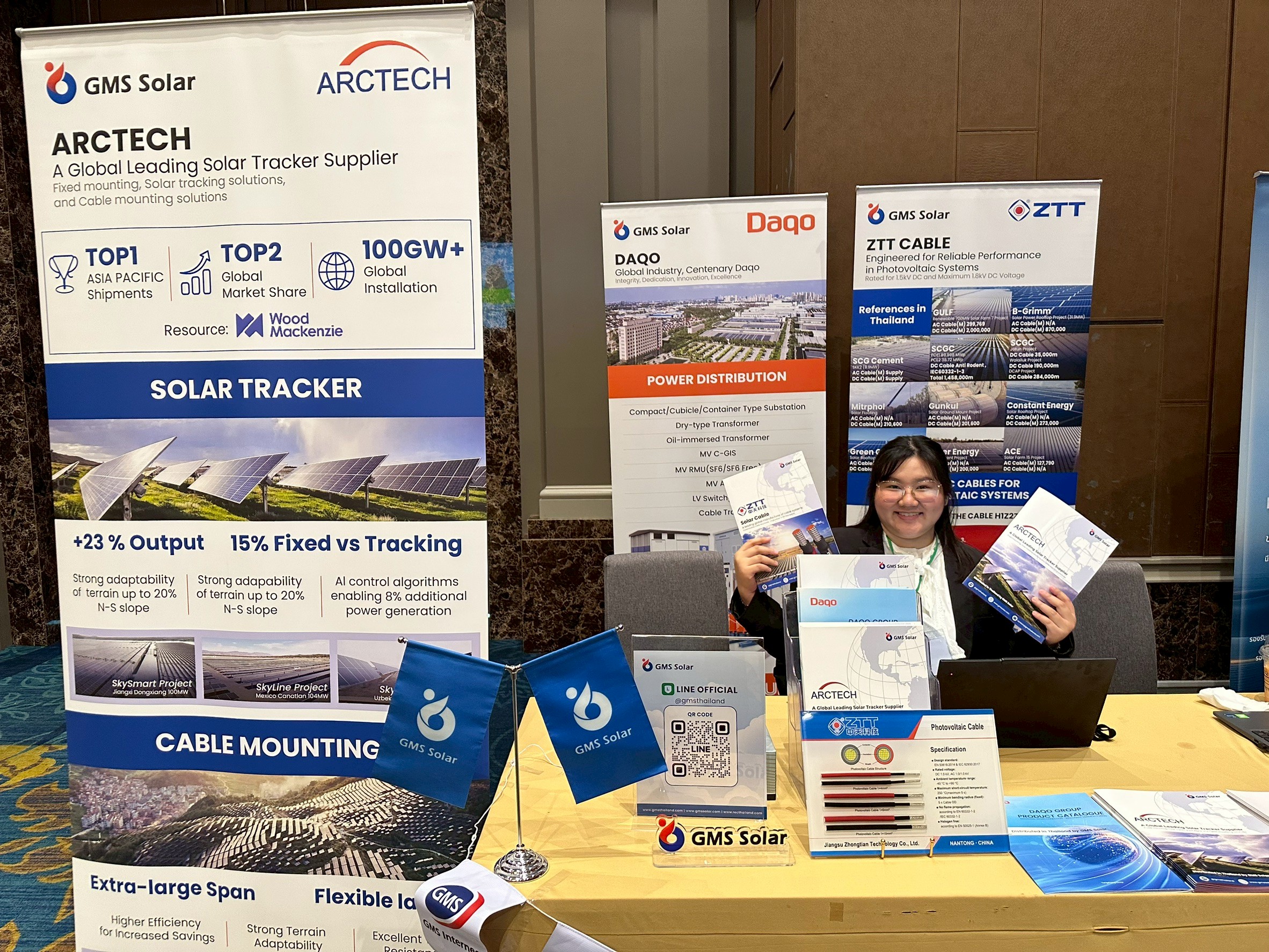 ภายในบูธ GMS SOLAR ได้นำเสนอผลิตภัณฑ์และเทคโนโลยีจาก 4 แบรนด์ชั้นนำ ได้แก่